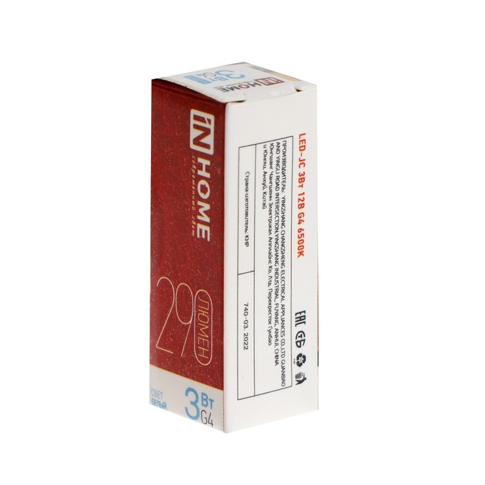 Лампа светодиодная IN HOME LED-JC, 3 Вт, 12 В, G4, 6500 К, 290 Лм