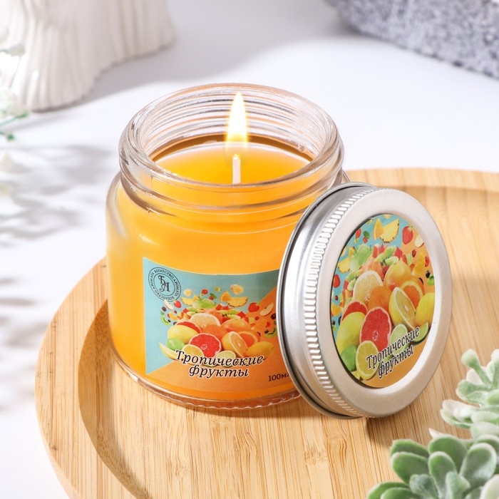 Свеча ароматическая в стекле 6,3см, 100мл, тропические фрукты
