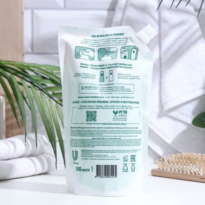 Шампунь и бальзам Чистая Линия на отваре целебных трав, 2 в 1, дой-пак, 500 мл