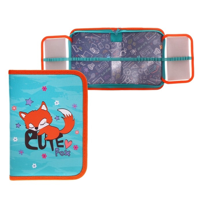 Пенал 1 секция, 140 х 200 х 40 мм, 2 откидные планки, тканевый, ПКТ 09-20-1 "Лисёнок"