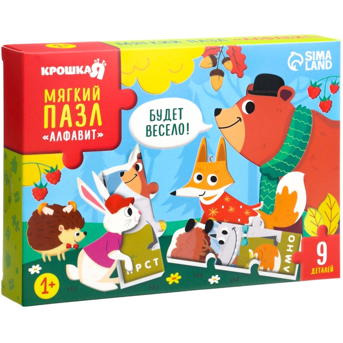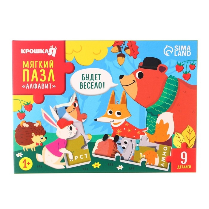 Мягкий пазл для малышей «Алфавит: Лесные животные», 9 деталей, Крошка Я