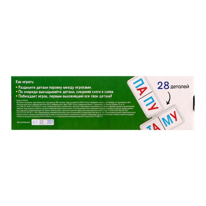 - Далее игроки по очереди выкладывают фишки, соединяя слоги в слова.