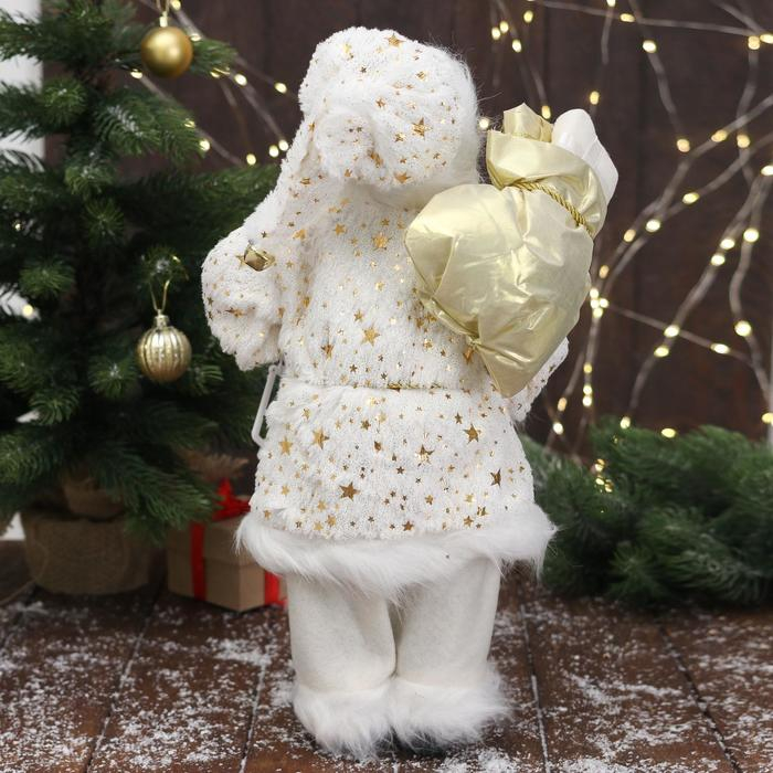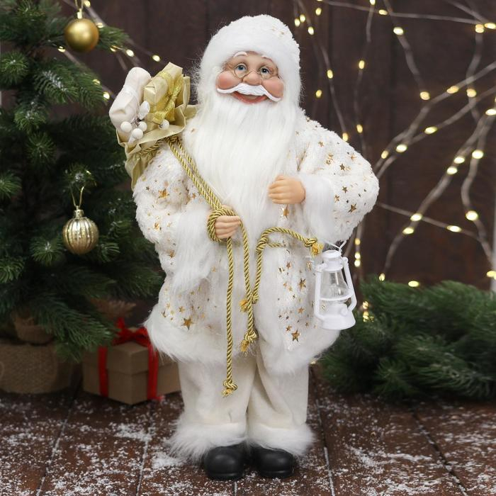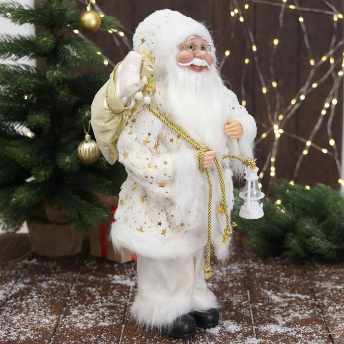 Дед Мороз "В белой звёздной шубке, с фонарём" 45 см