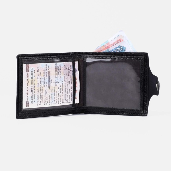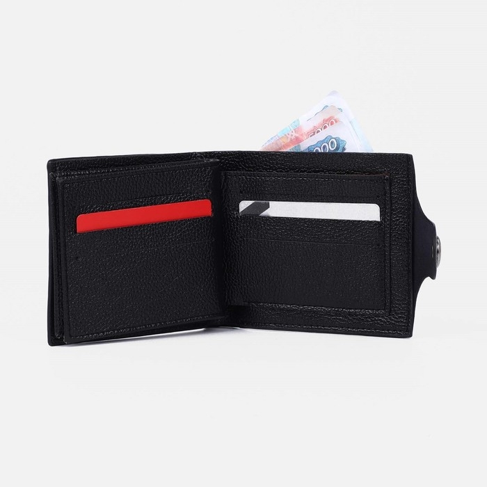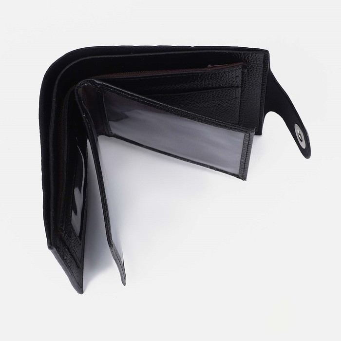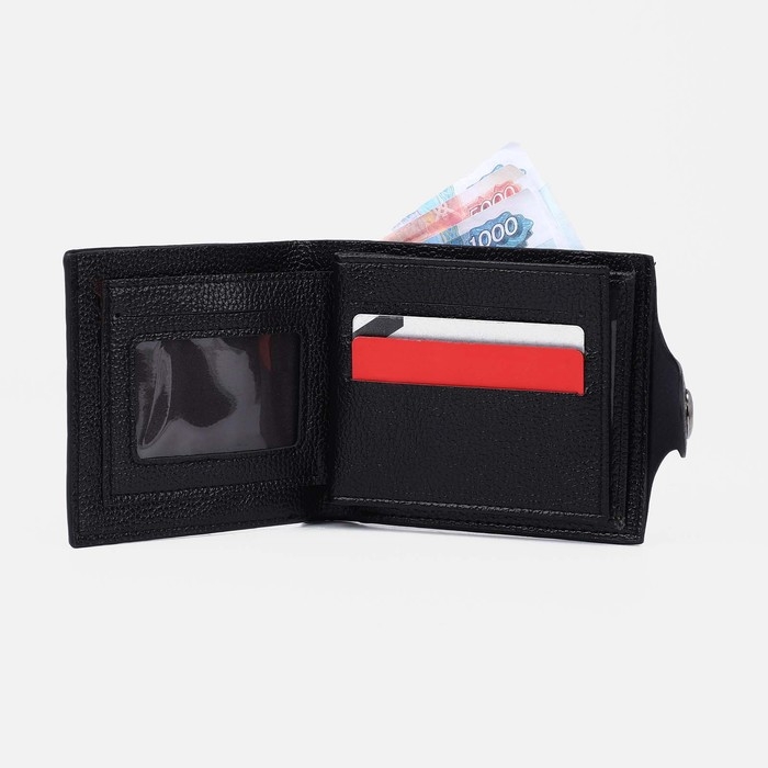 Портмоне мужское на магните, отдел для купюр, для монет, для карт, цвет чёрный