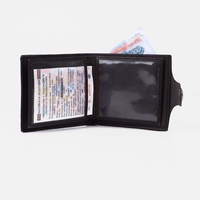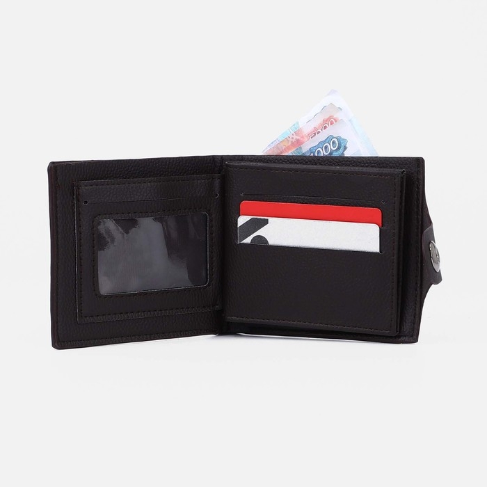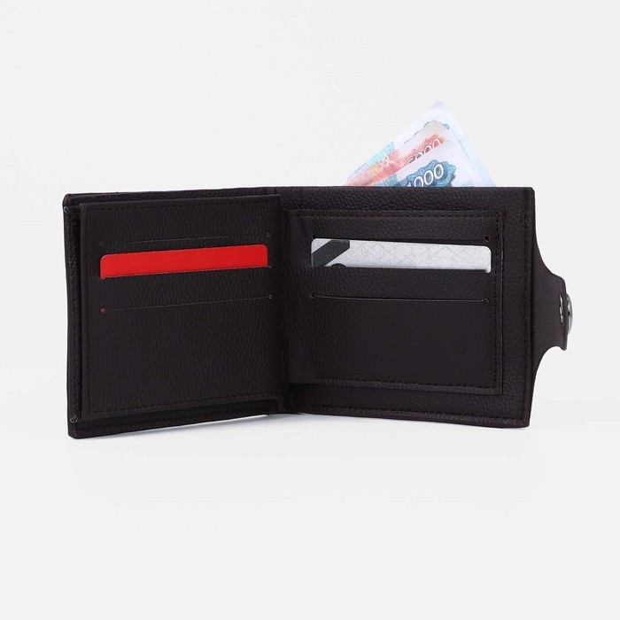 Портмоне мужское на магните, отдел для купюр, для карт, для монет, цвет тёмно-коричневый