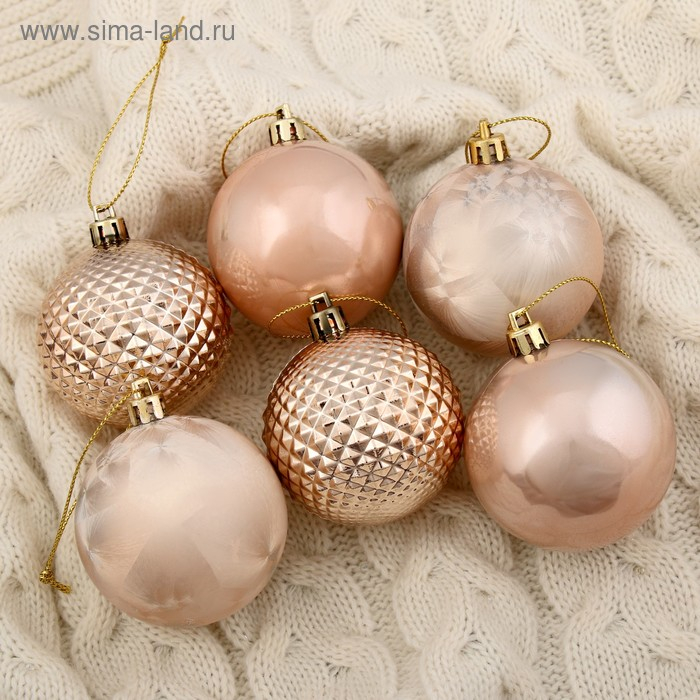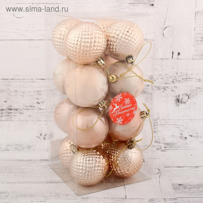 Набор шаров пластик d-6 см, 16 шт "Венера" розовое золото