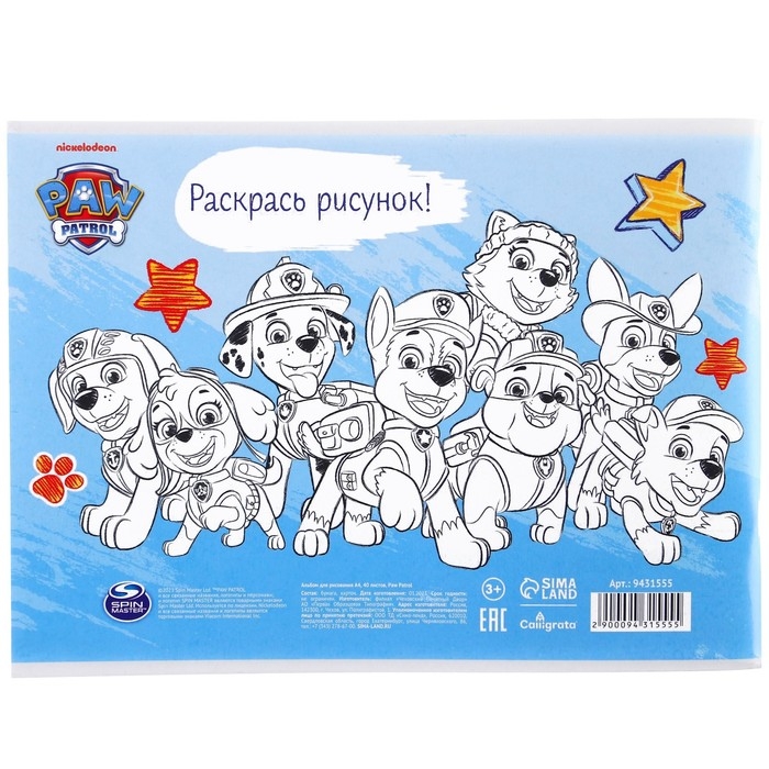 Альбом для рисования А4, 40 листов 100 г/м², на скрепке, Щенячий патруль