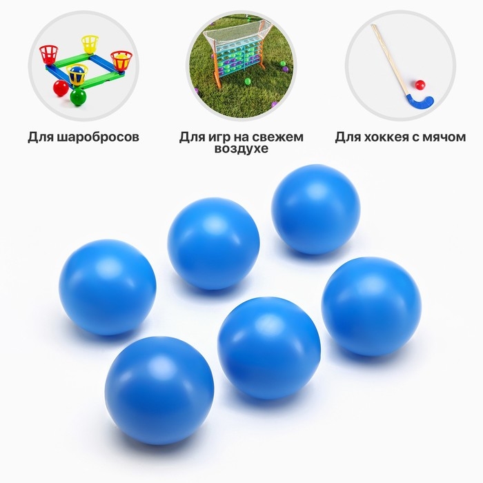 Набор мячей для садовых игр, хоккея, 6 шт, d-7 см, микс