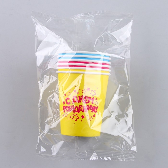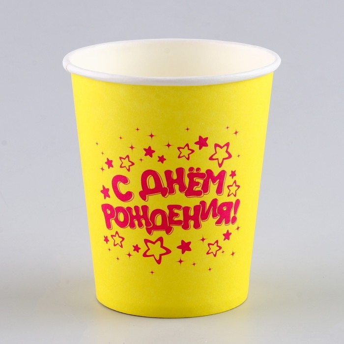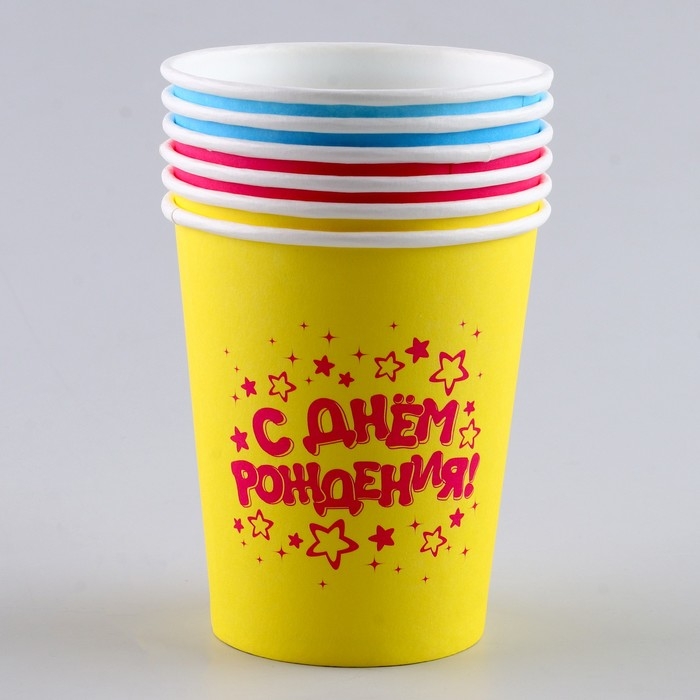 Стакан одноразовый бумажный "С Днём Рождения" (набор 6 шт),250 мл