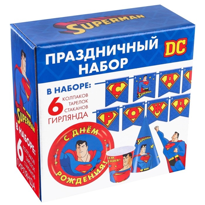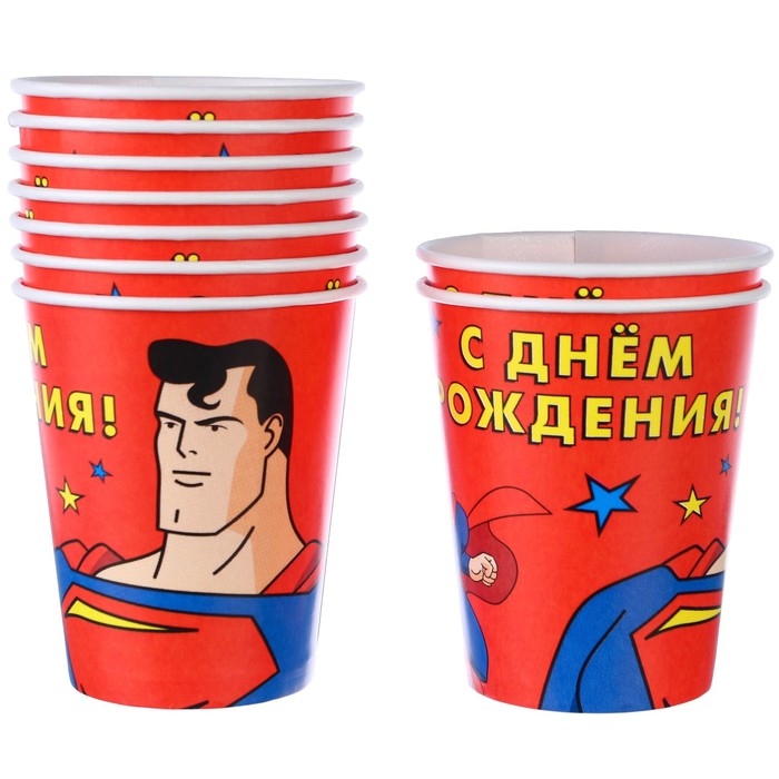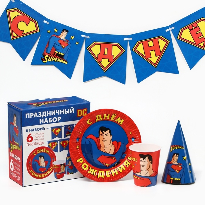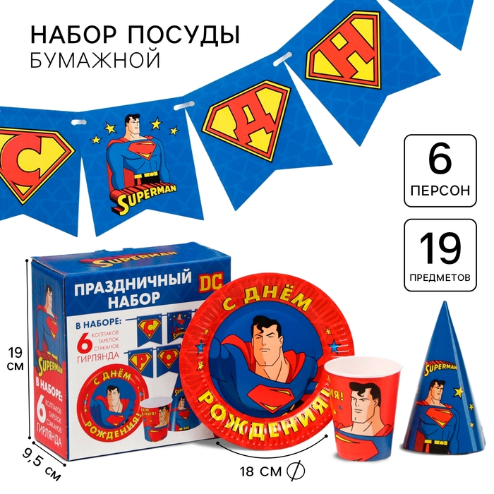 Набор одноразовой бумажной посуды, на 6 персон "С Днем Рождения", Супергерои