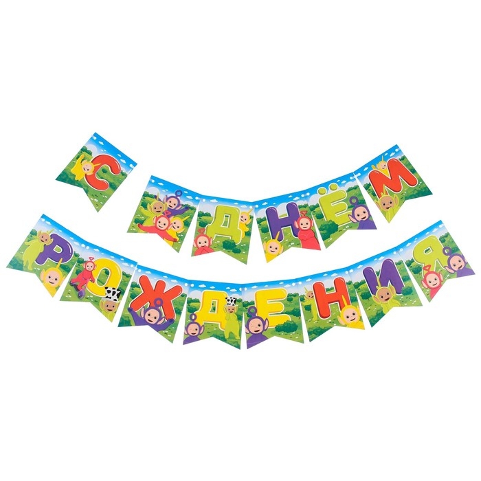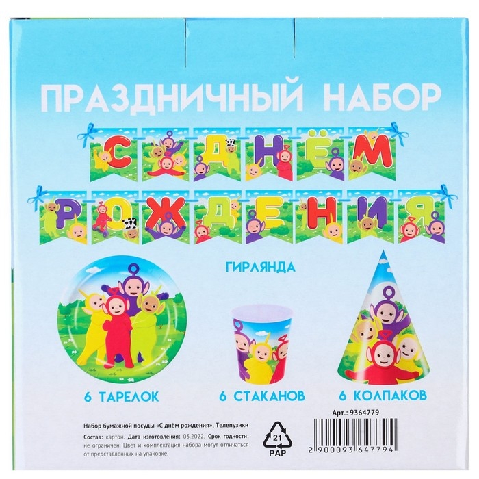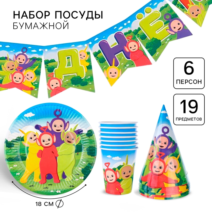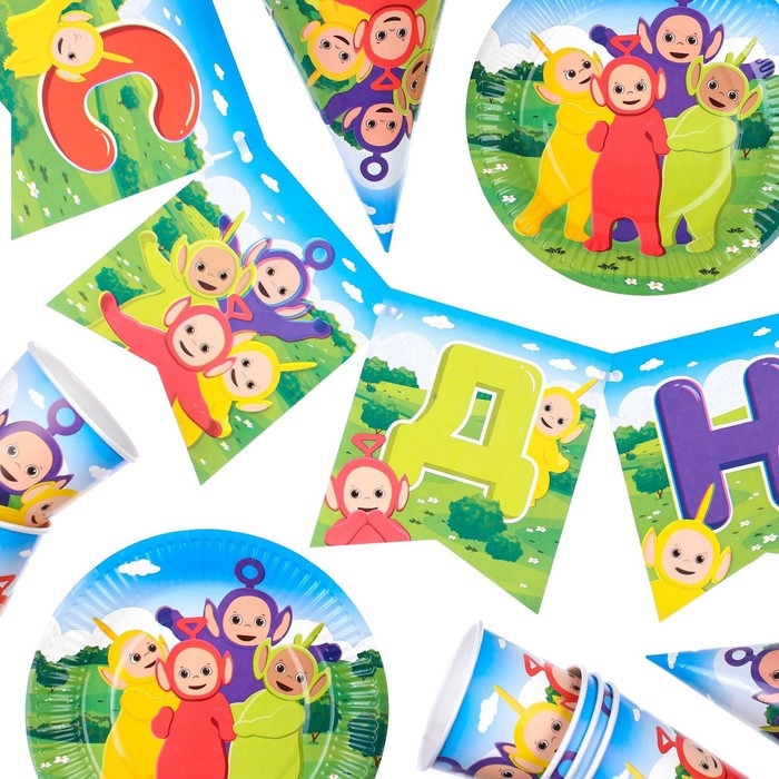 Набор одноразовой бумажной посуды, на 6 персон "С Днем Рождения", Телепузики