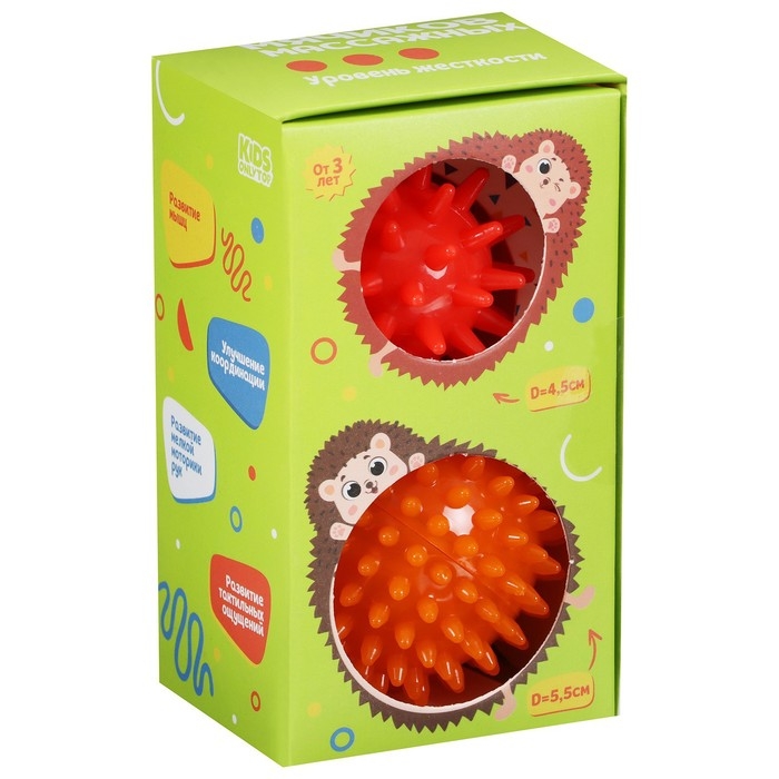Набор массажных мячей ONLYTOP «Ёжики»: 2 шт., d=4,5, d=5,5 см, цвета МИКС