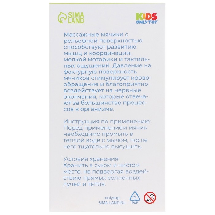 Массажёр развивает моторику рук ребёнка, способствует улучшению памяти, внимания и развитию речи.