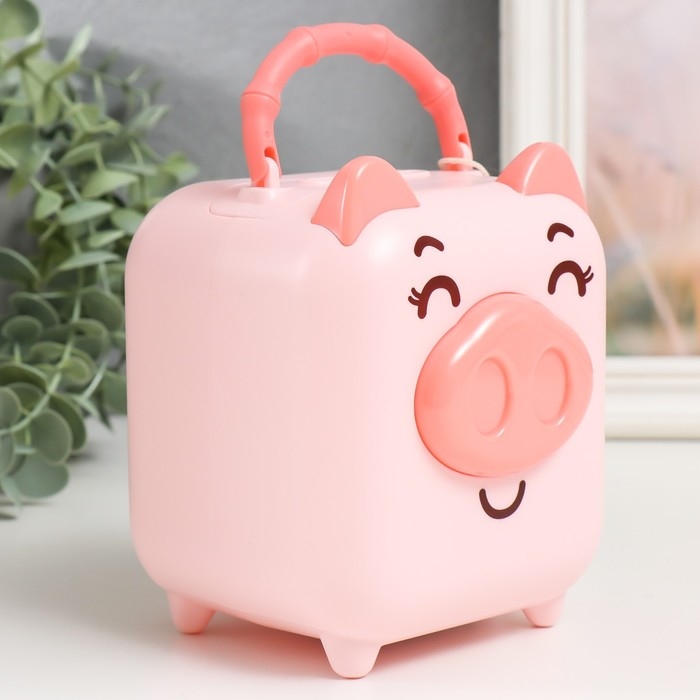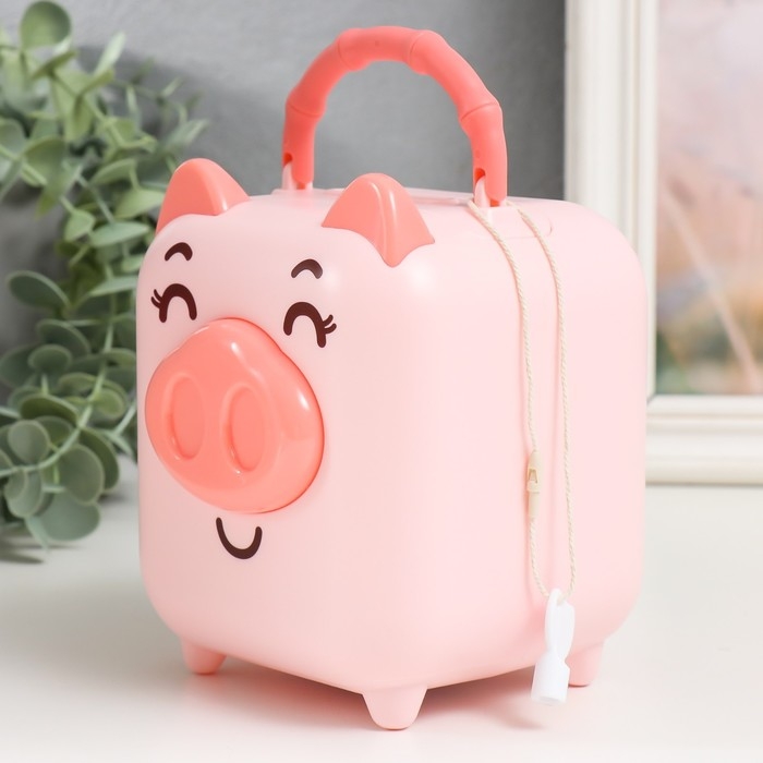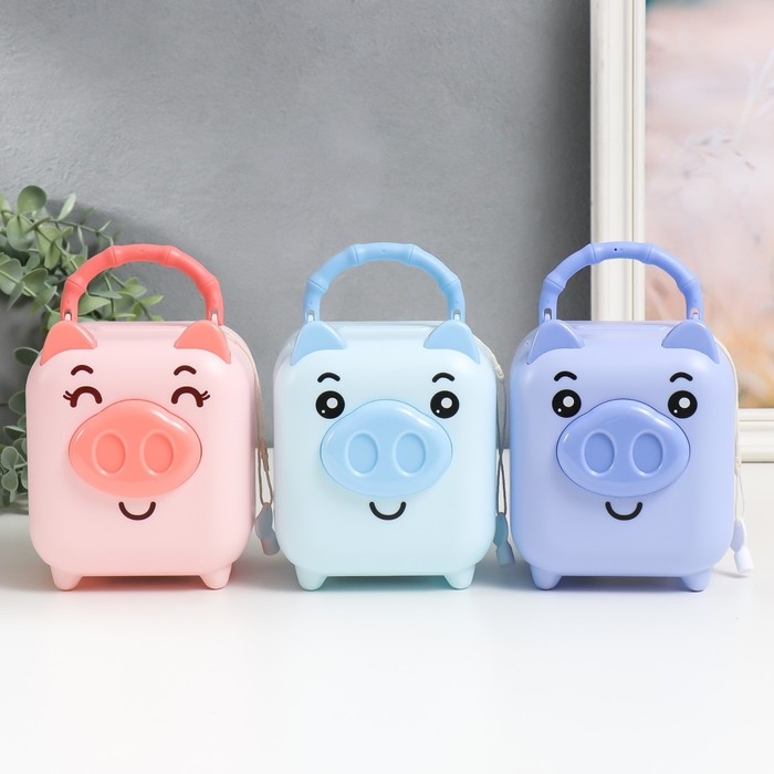 Копилка пластик "Чемоданчик - свинка" МИКС 11х10,5х14 см