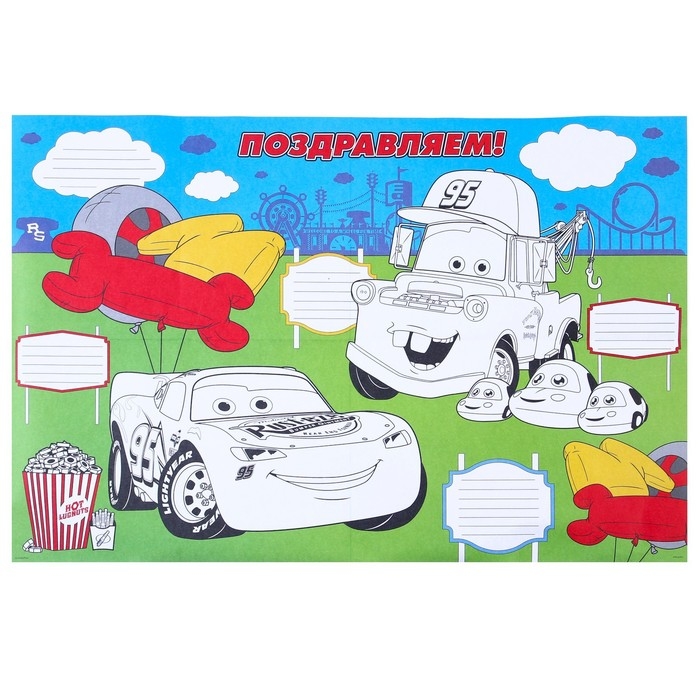 Гирлянда на люверсах с плакатом "С Днем Рождения", длина 304 см, Тачки