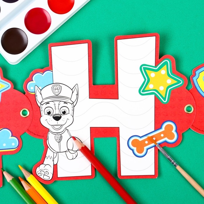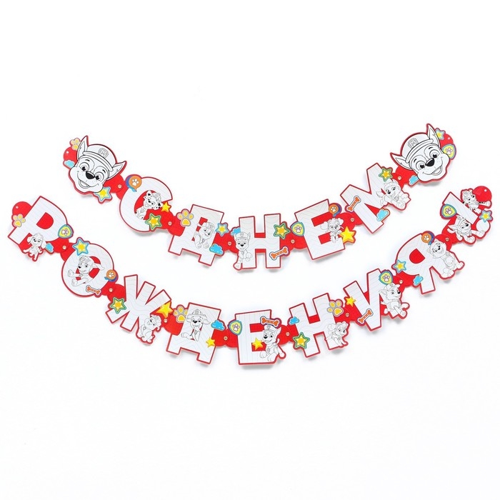 Гирлянда-раскраска на люверсах "С днем рождения!", с плакатом, длина 250 см, Щенячий патруль
