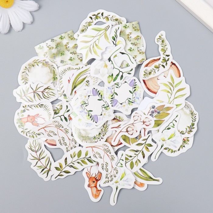 Наклейки для творчества "Растения и лесной олень" набор 46 шт 4,4х4,4х1,1 см