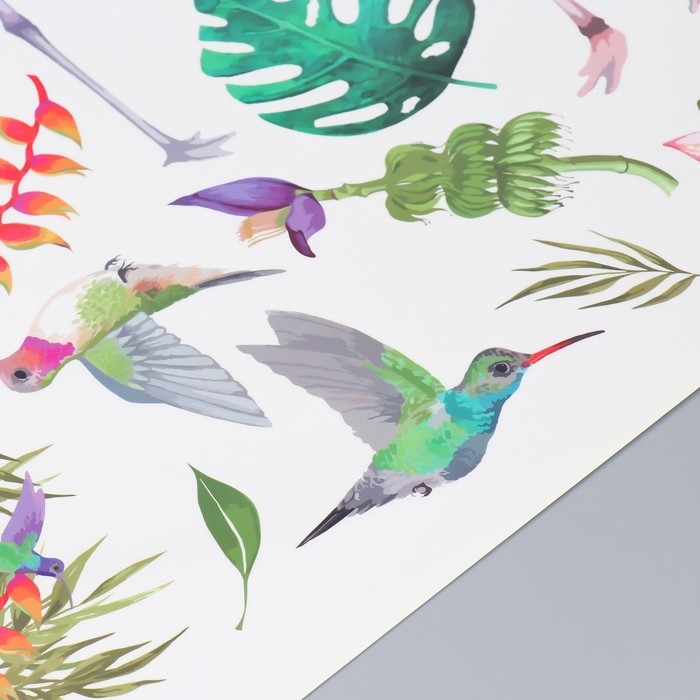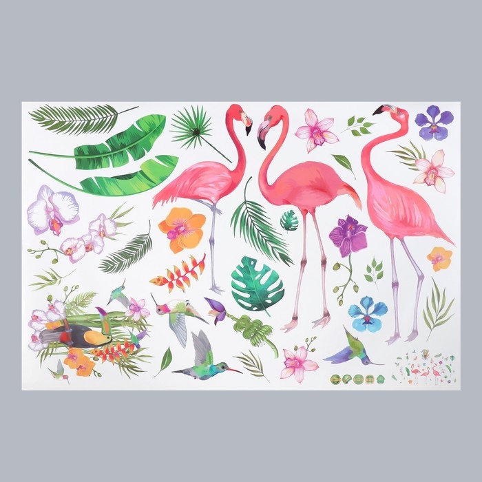 Наклейка пластик интерьерная цветная "Фламинго, тукан и колибри" 60х90 см