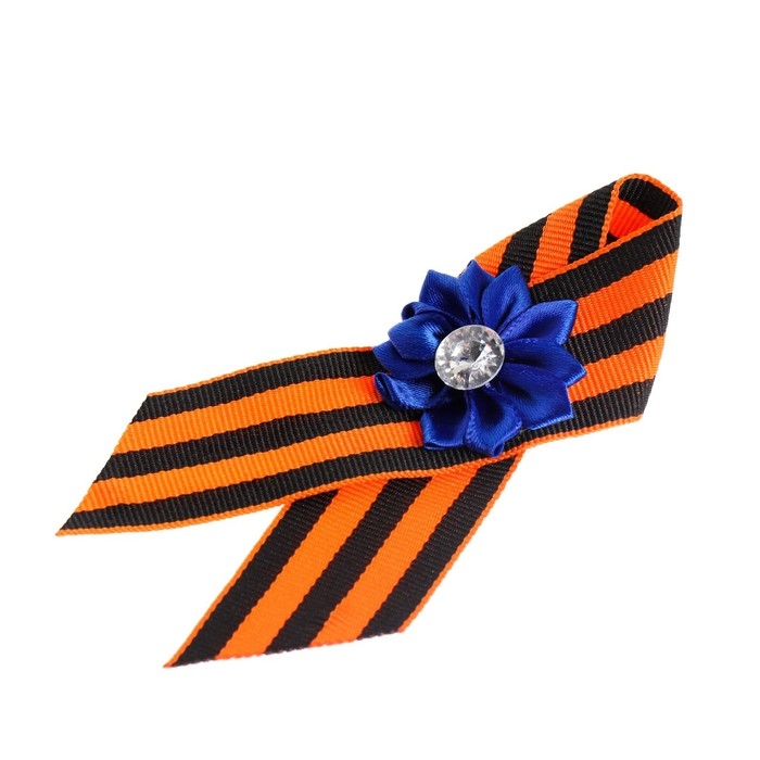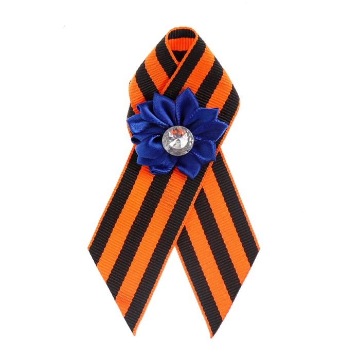 Брошь - георгиевская лента "С Днём Победы 1941-1945" к 9 мая, синий цветок