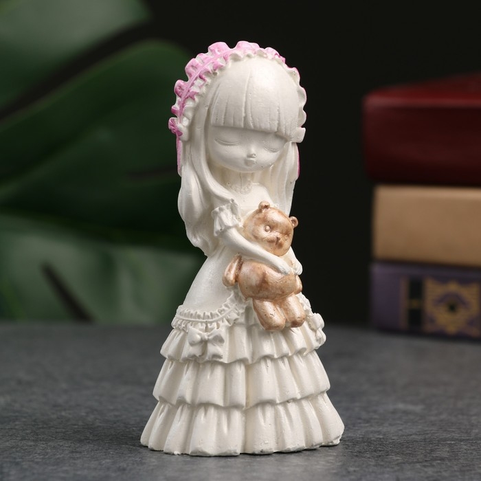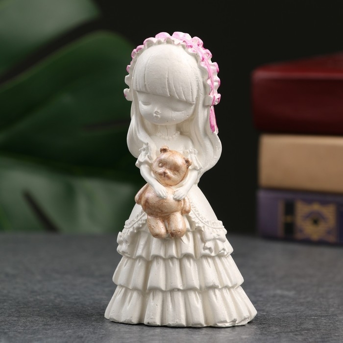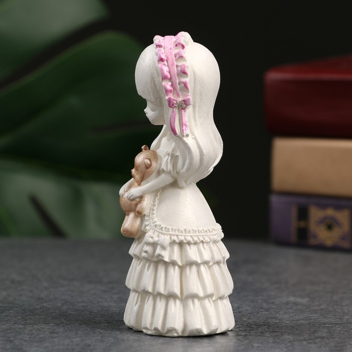 Фигура "Девочка с мишкой" перламутр, 11см