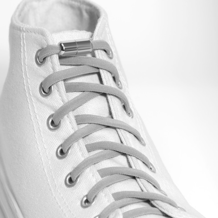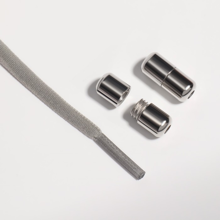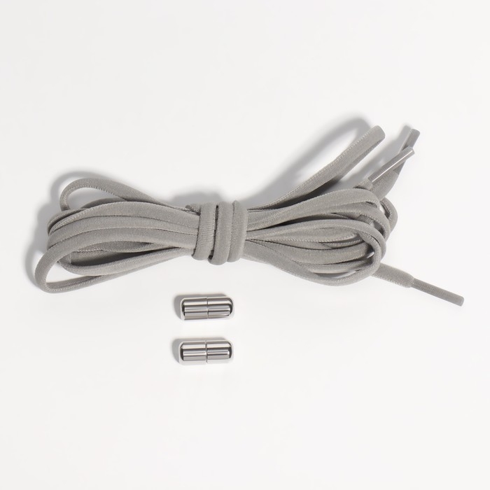 Шнурки для обуви, пара, круглые, с фиксатором, эластичные, d = 5 мм, 100 см, цвет серый