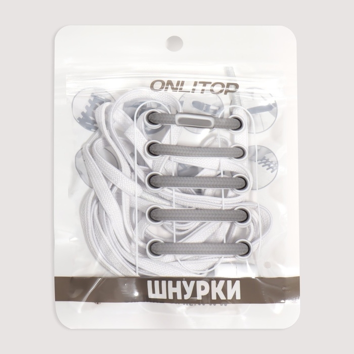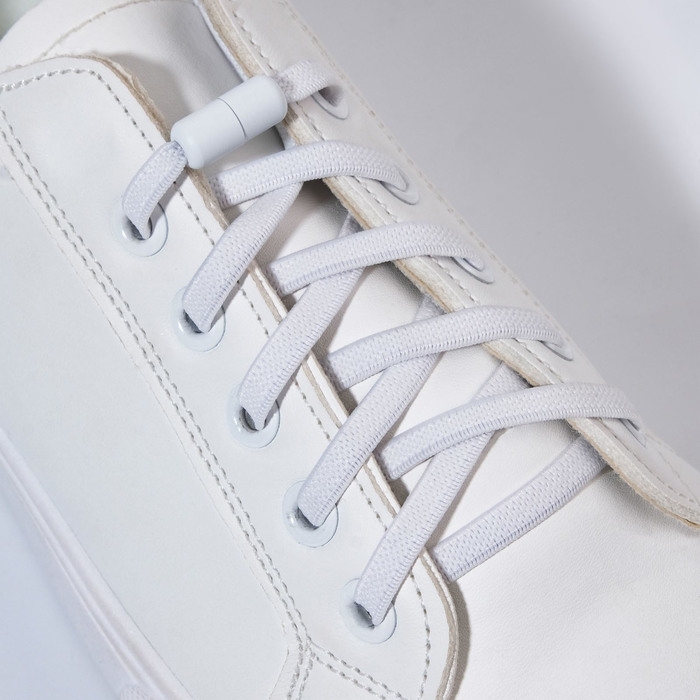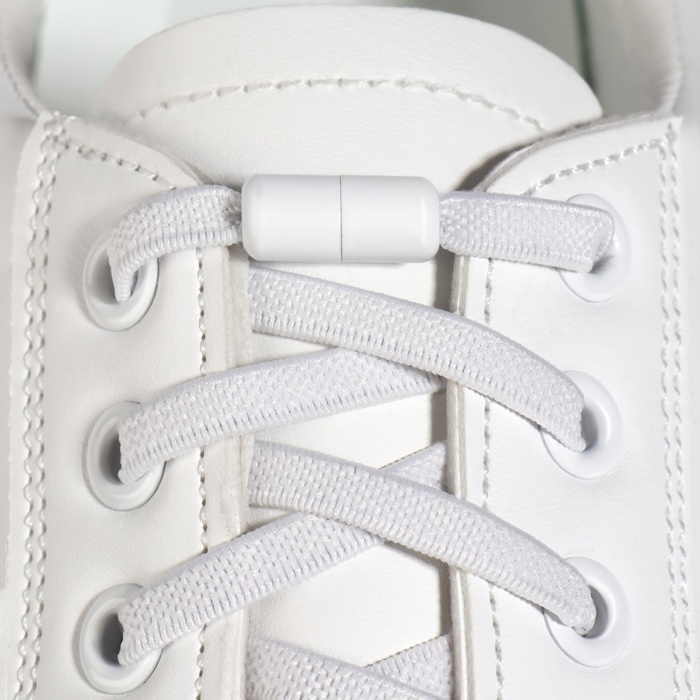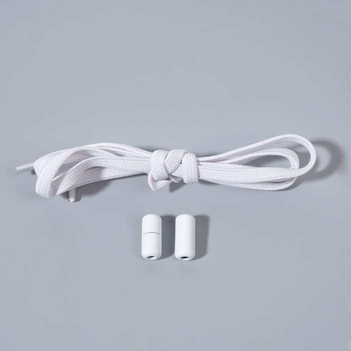 Шнурки для обуви, пара, плоские, с фиксатором, эластичные, 6 мм, 100 см, цвет белый