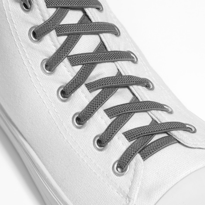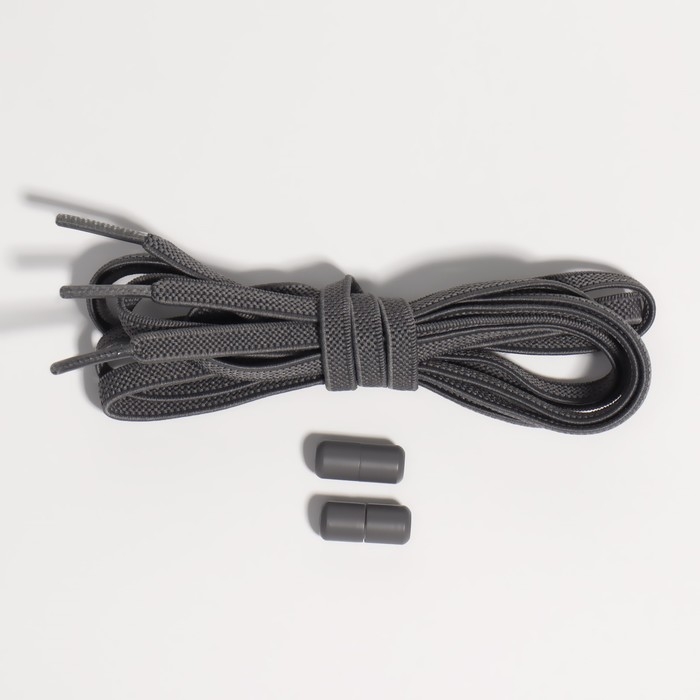 Шнурки для обуви, пара, плоские, с фиксатором, эластичные, 6 мм, 100 см, цвет серый
