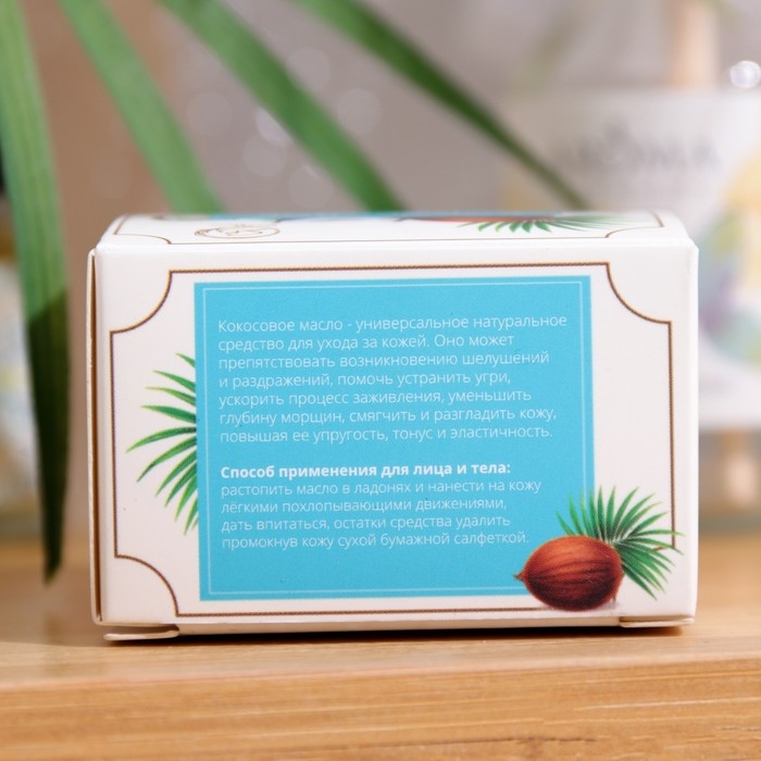 Экологически чистое кокосовое масло первого холодного отжима идеально подходит для ухода за самой чувствительной кожей. Полезные свойства кокосового масла обеспечиваются веществами, которые входят в его состав. Это гиалурованая кислота, которая может прекрасно питать, увлажнять и смягчать, надолго поддерживая баланс влаги в коже и восстанавливая её защитные функции, помочь разгладить имеющиеся неглубокие морщинки, повысить общий тонус, упругость и эластичность кожных покровов. А также насыщенные жирные кислоты, которые позволяют маслу быстро впитываться в эпидермис, устраняя излишнюю сухость и шелушение. Лауриновая кислота в составе масла высоко ценится в косметологии за свои антибактериальные, противогрибковые и противовоспалительные свойства. Масло хорошо подходит в качестве средства до и после загара, в солярии и на солнце.