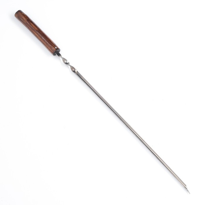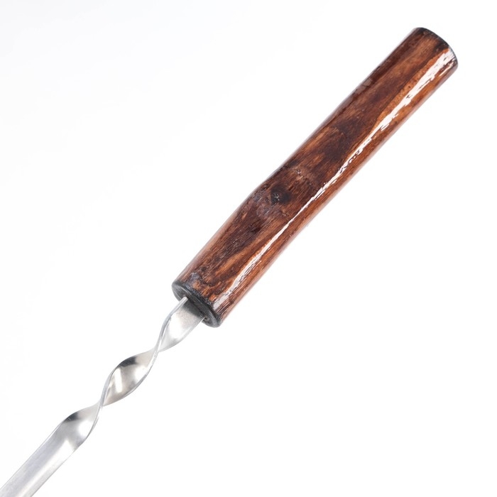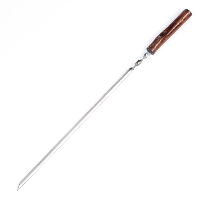 Рабочая часть шампура выполнена из нержавеющей стали толщиной 2 мм. Деревянная ручка обеспечивает удобство использования при переворачивании мяса.