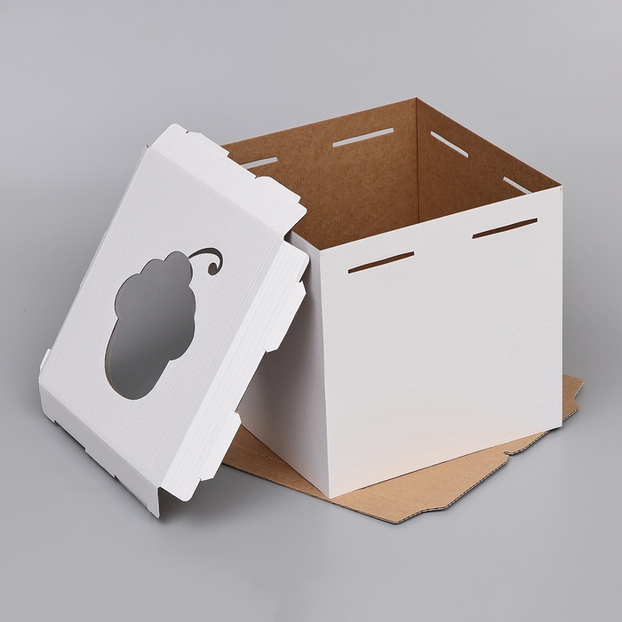 Коробка под торт с окном, "Пироженка", белая, 30 х 30 х 30 см
