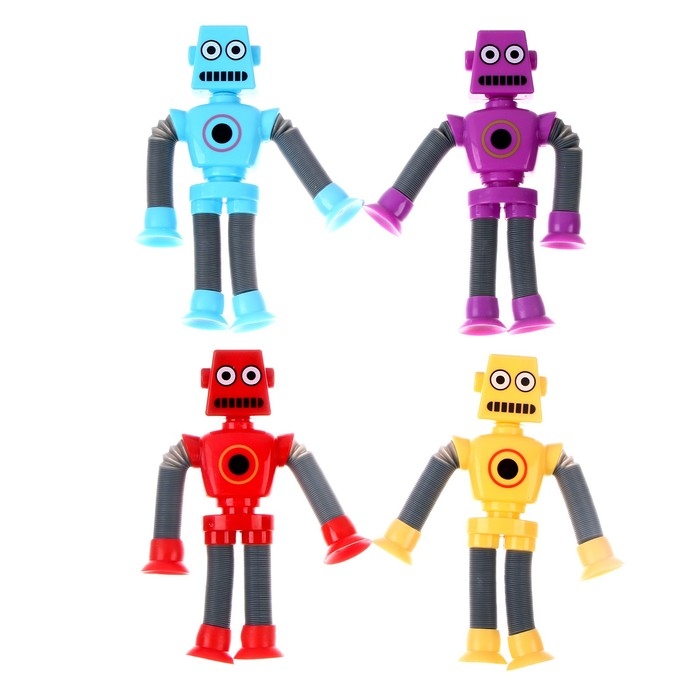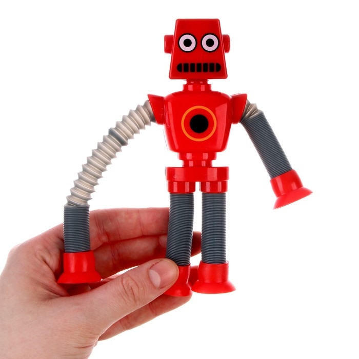 Развивающая игрушка «Робот» станет отличным дополнением для игр ребёнка. Руки и ноги робота растягиваются благодаря пружинам. А ещё у робота есть 4 присоски, с помощью которых игрушку можно прикрепить к чему-нибудь.