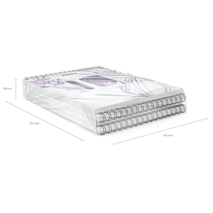 Блокнот формата А5 (148х210 мм). Обложка из высококачественного износостойкого матового пластика с фактурой «песок». Эффектный стильный дизайн выполнен печатью красками в модных тонах. В блоке 80 листов в клетку. Бумага офсетная плотностью 60 г/м2. Цвет линовки - синий. Скругленные уголки обложки. Тип скрепления - спираль. Блокноты упакованы в термоусадочную пленку по 4 штуки.