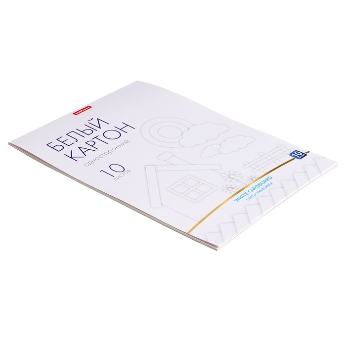 Белый картон немелованный односторонний формата А4 (203х280 мм). 10 листов. Плотность наполнения — 170 г/м2. Тип скрепления — клей. На внутренней стороне обложки приводятся инструкции по изготовлению поделок. Упакован в термоусадочную пленку по 10 штук.