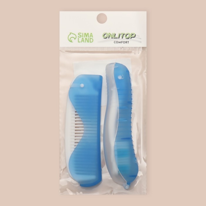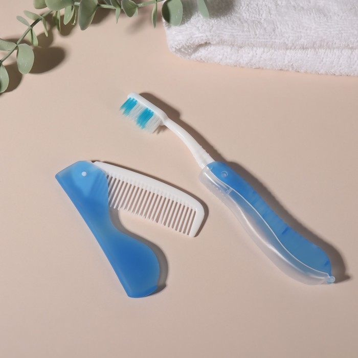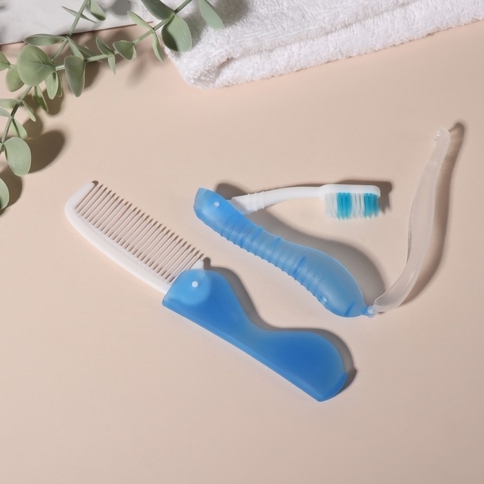 Набор дорожный, 2 предмета: расчёска, щётка, цвет белый/голубой
