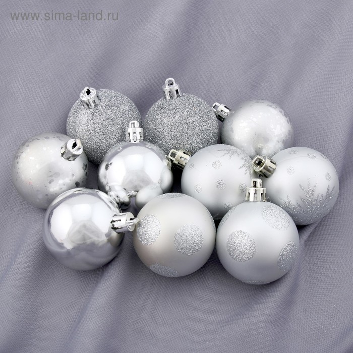 Набор шаров пластик d-5 см, 34 шт "Серебристые узоры" серебро