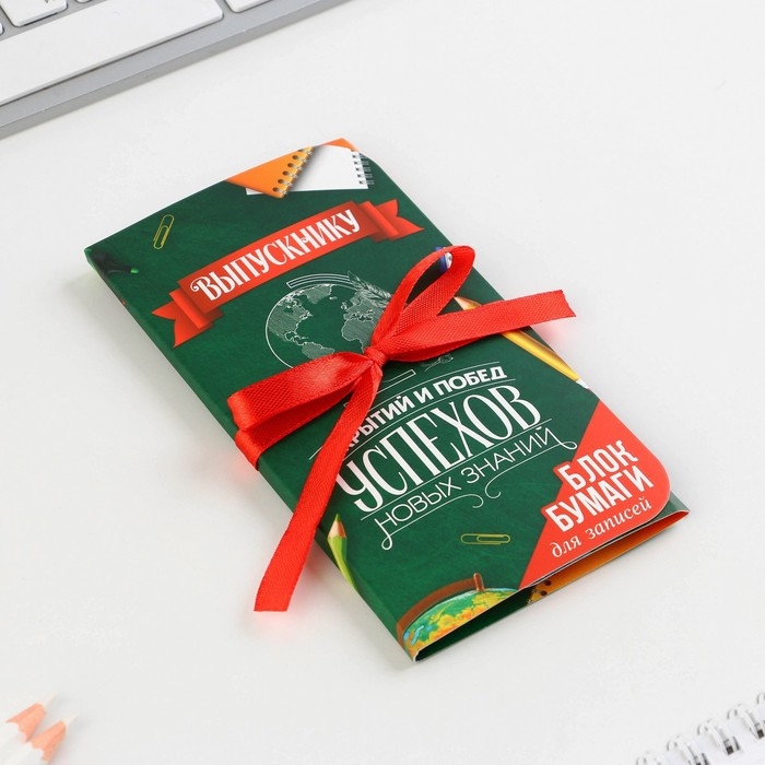 Блок бумаги для записей с липким слоем на выпускной «Открытий и побед» в открытке с лентой, 30 листов