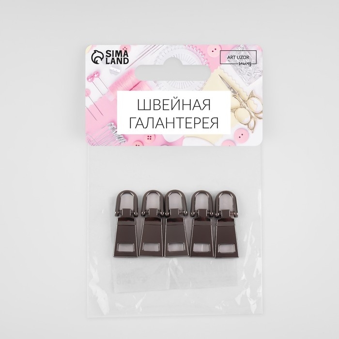 Пуллер для молнии, металлический, 2,8 × 1 см, 5 шт, цвет чёрный никель