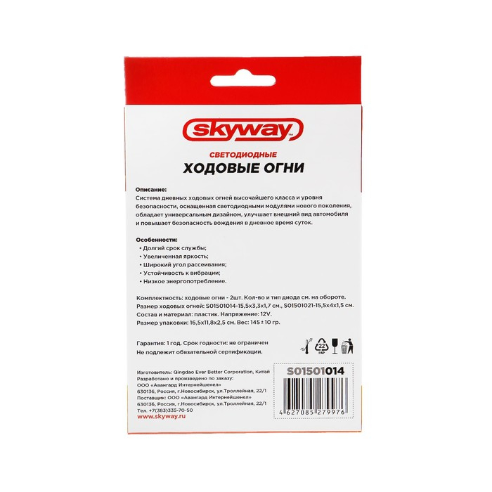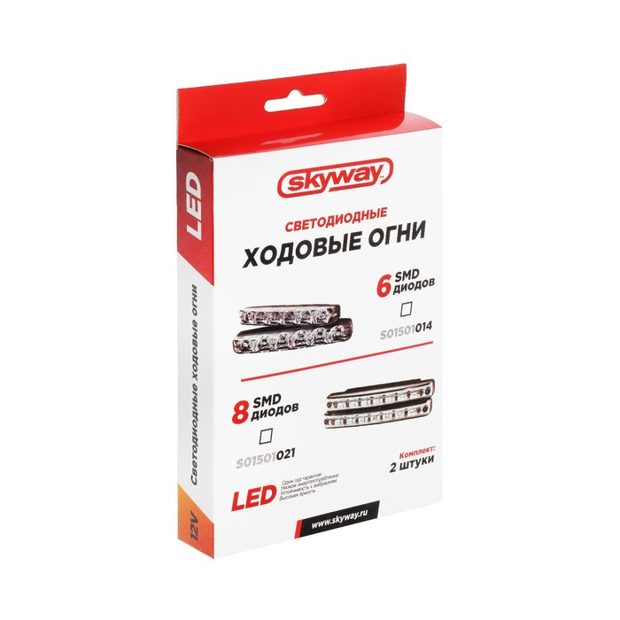 Ходовые огни SKYWAY 12V 6 SMD диодов 2шт - система дневных ходовых огней высочайшего класса и уровня безопасности, оснащённая светодиодными модулями нового поколения, обладает универсальным дизайном, улучшает внешний вид автомобиля и повышает безопасность вождения в дневное время суток.