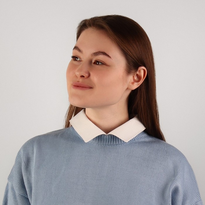 Накладной воротник идеально подойдёт для тех, кто любит дополнить свой образ акцентной деталью. Достаточно наложить воротник поверх одежды и застегнуть сзади на пуговку. Прекрасно сочетается с лёгкой кофточкой, джемпером или свитшотом.
