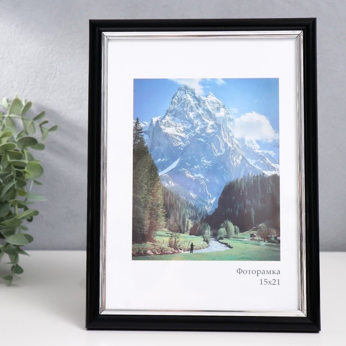 Фоторамка пластик "Гамма" 15х21 см, чёрный с серебром
