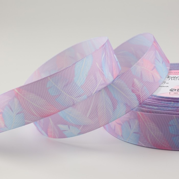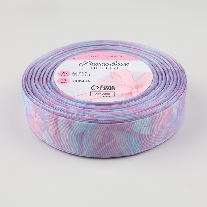 Лента репсовая «Пёрышки», 25 мм, 23 ± 1 м, цвет сиреневый/голубой