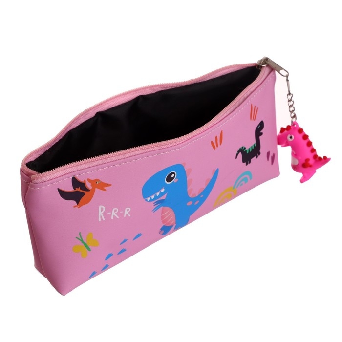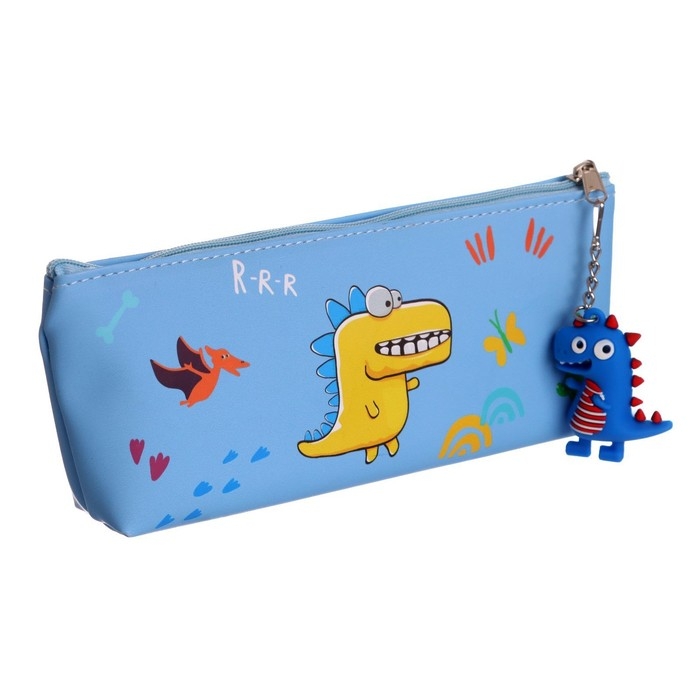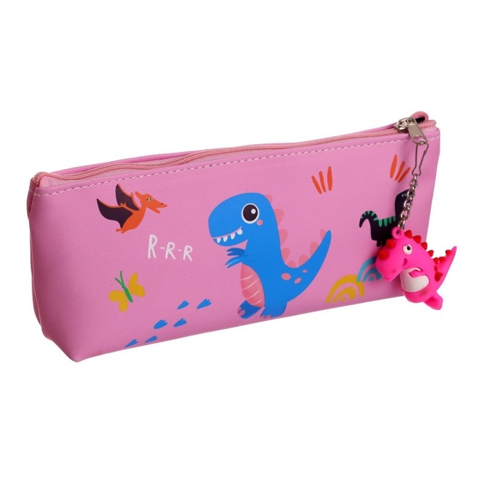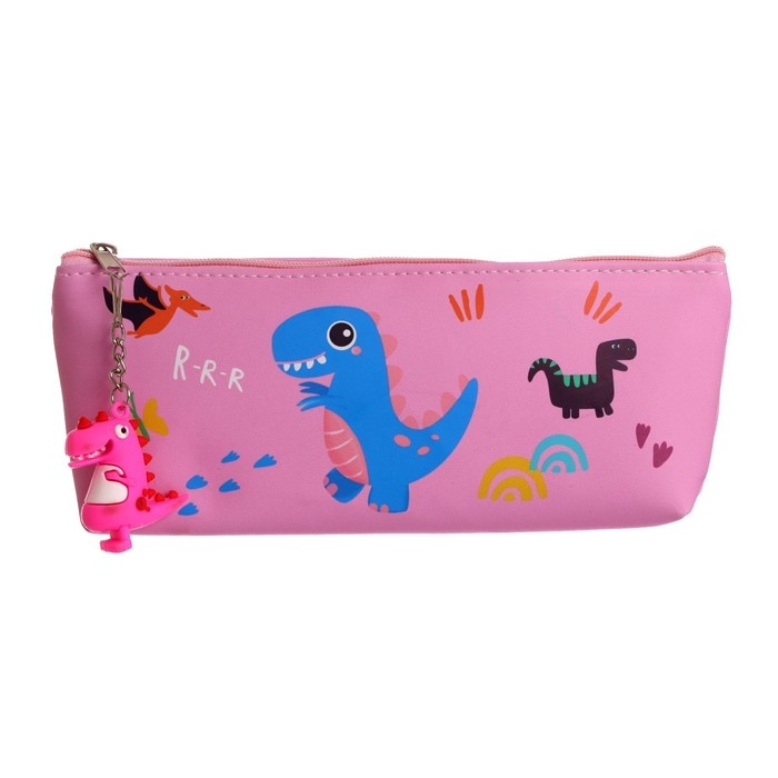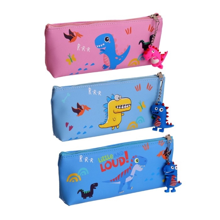 Пенал школьный на молнии "Динозаврик", с подвеской, МИКС