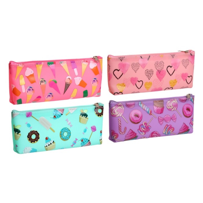 Пенал школьный на молнии "Сладости", МИКС