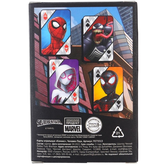 Карты игральные "Комикс" Человек-паук, Марвел