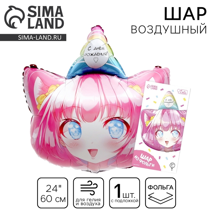 Воздушный шар фольгированный 24" «Девочка аниме», с подложкой