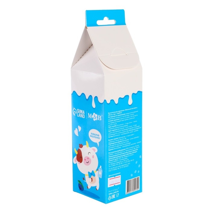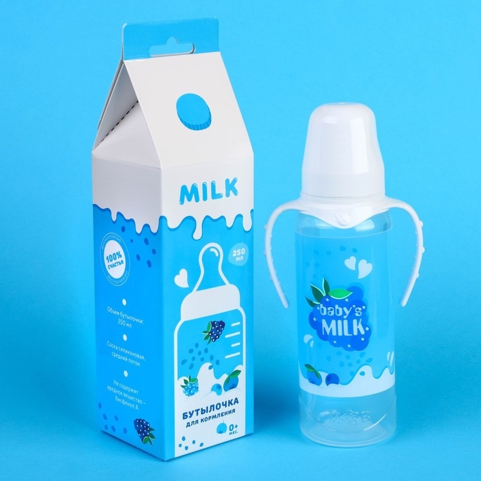 Бутылочка для кормления подарочная «Молочный коктейль», классическое горло, 250 мл., от 0 мес., с соской, с ручками