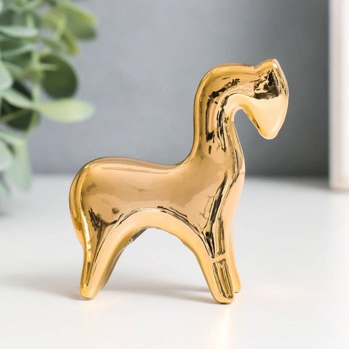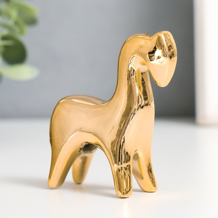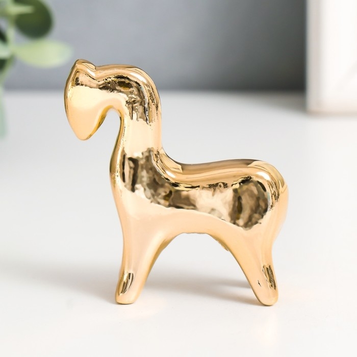 Сувенир керамика "Лошадка с опущенной головой" золото 2,5х6,5х7 см