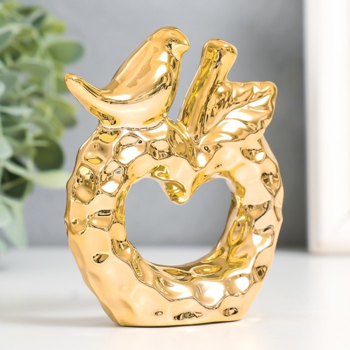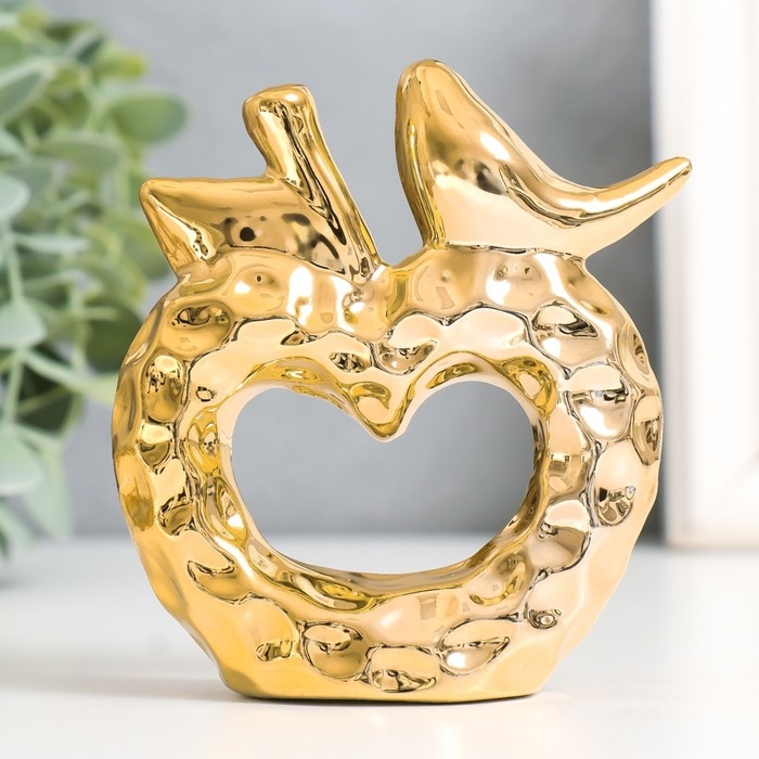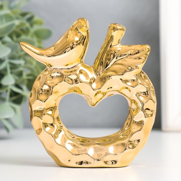 Сувенир керамика "Птица на яблоке" золото 10,3х3,3х10,3 см