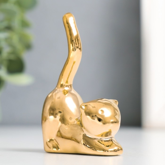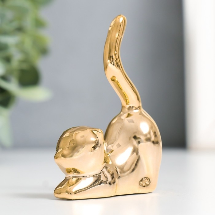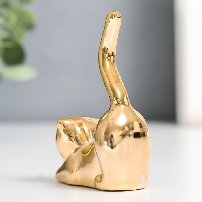 Сувенир керамика "Кот - потягушки" золото 5,5х2,4х7,8 см