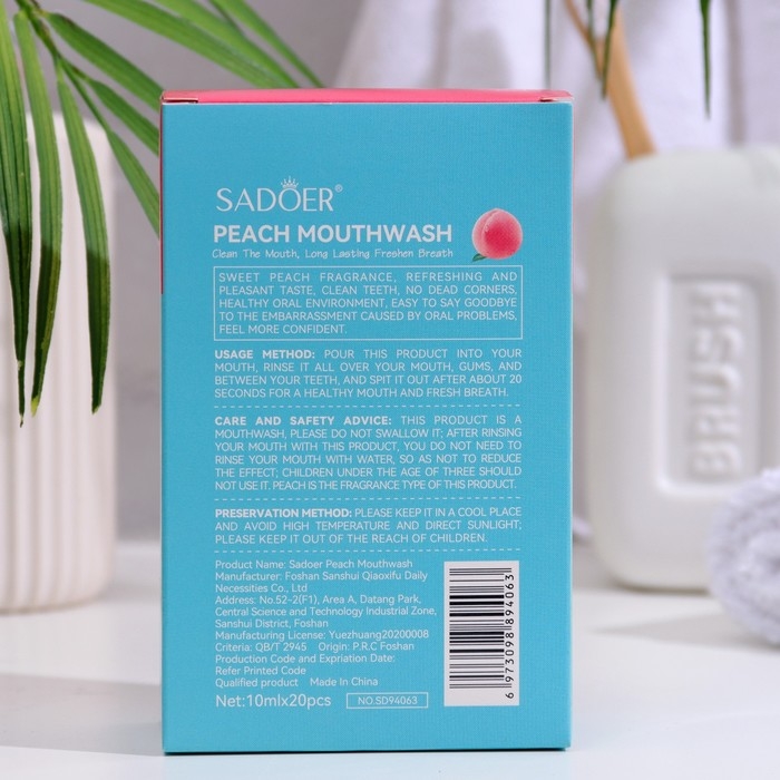 Набор ополаскивателей для рта в стиках со вкусом персика, 20шт по 10 мл
